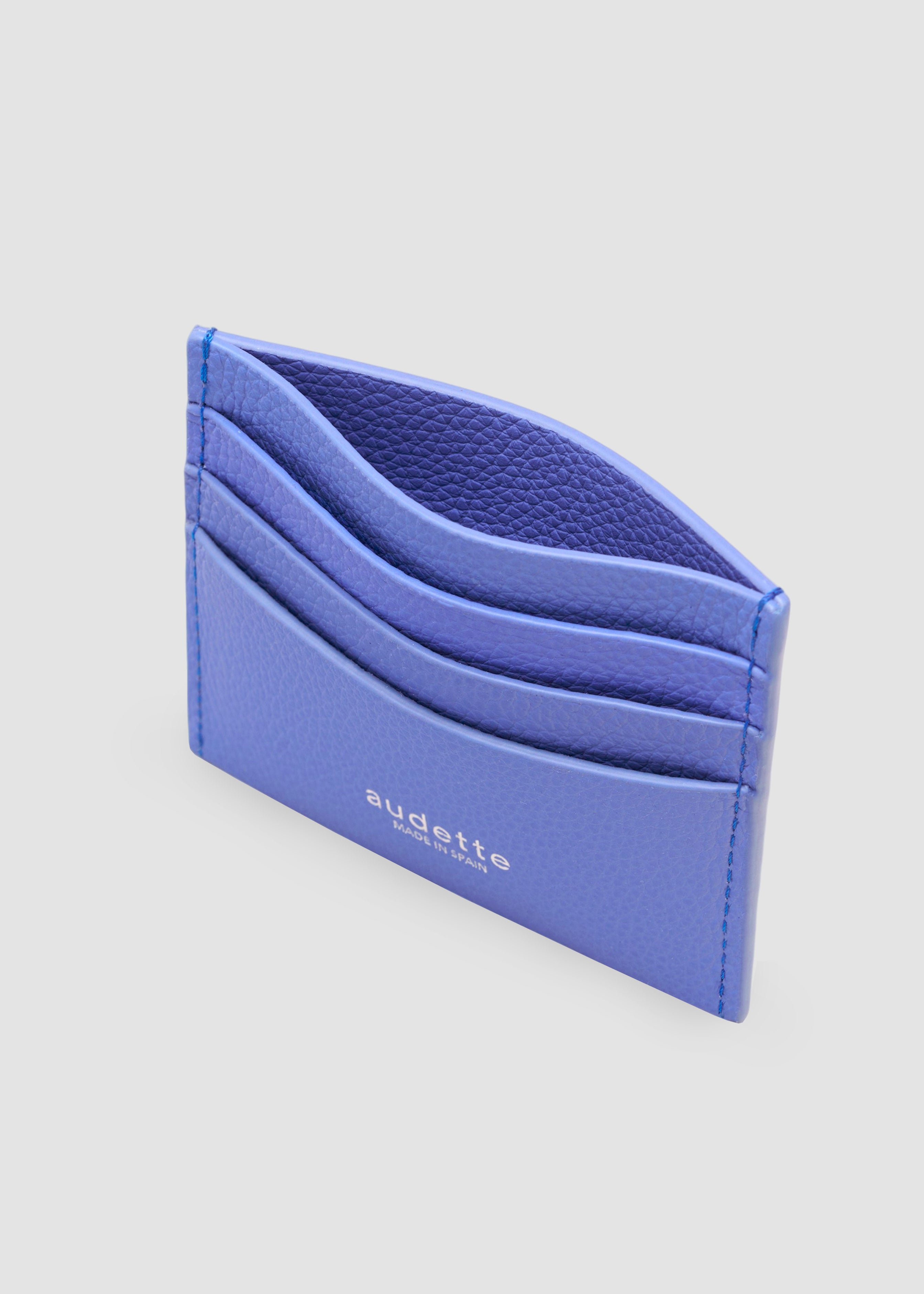 Our genderless cardholder is light, compact, and effortlessly organizes your cards, bills, and even a few coins. It features the Audette AA logo beautifully embossed on leather, making it unique.